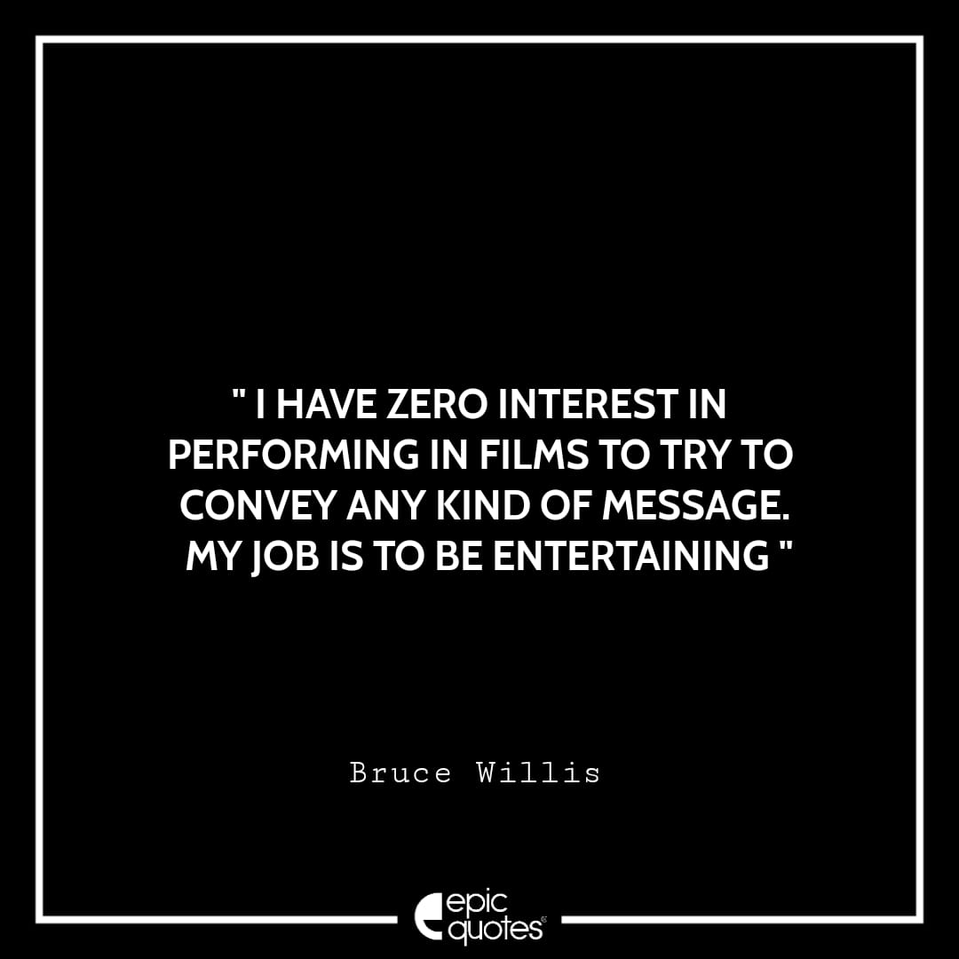 7 I have zero interest in performing in films to try to convey any kind of message. My job is to be entertaining. -Bruce Willis