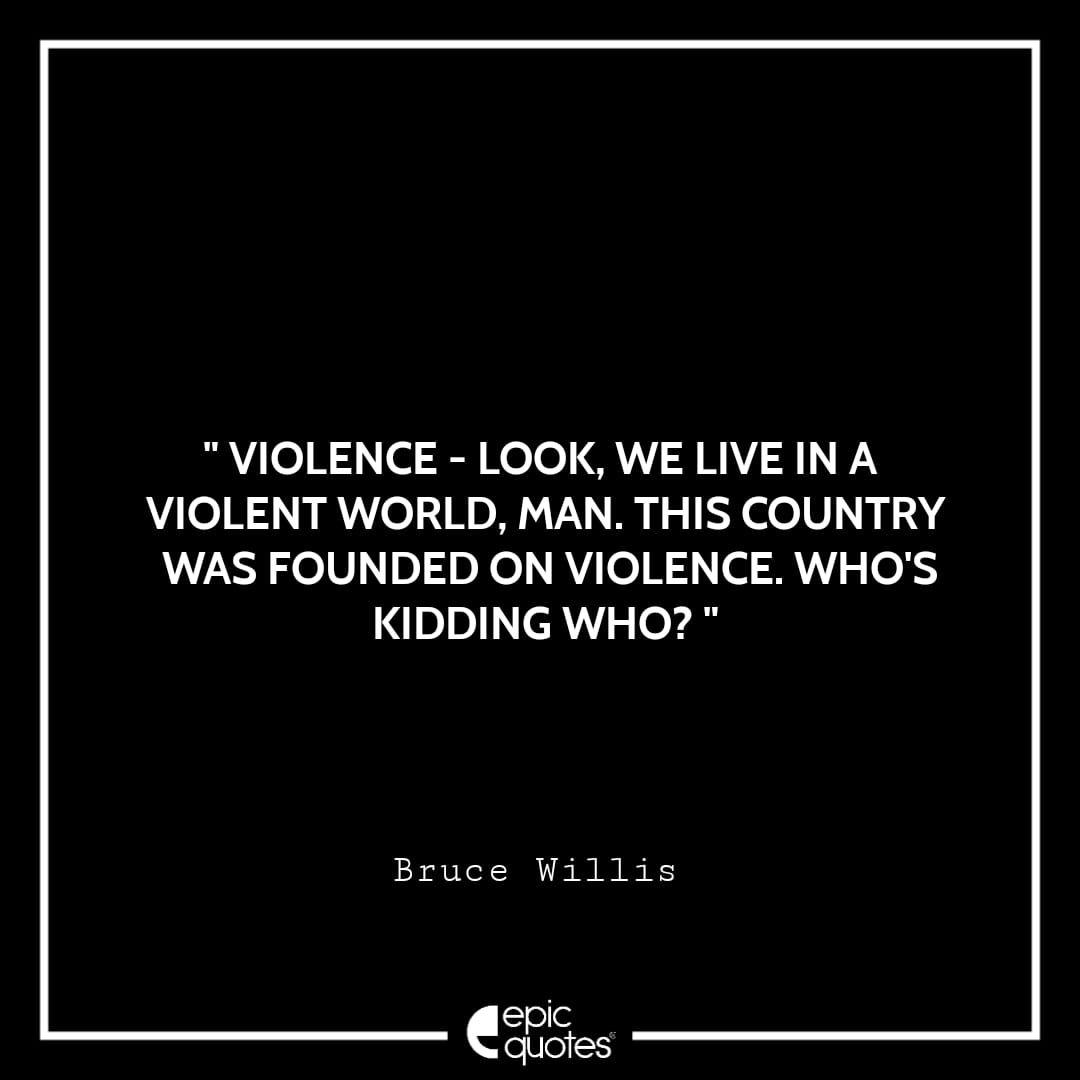 8 Violence – look, we live in a violent world, man. This country was founded on violence. Who’s kidding who? -Bruce Willis