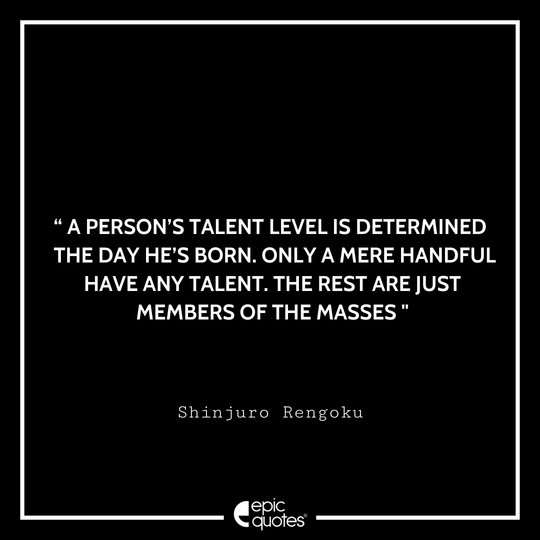 15 A person’s talent level is determined the day he’s born. Only a mere handful have any talent. The rest are just members of the masses. – Shinjuro Rengoku