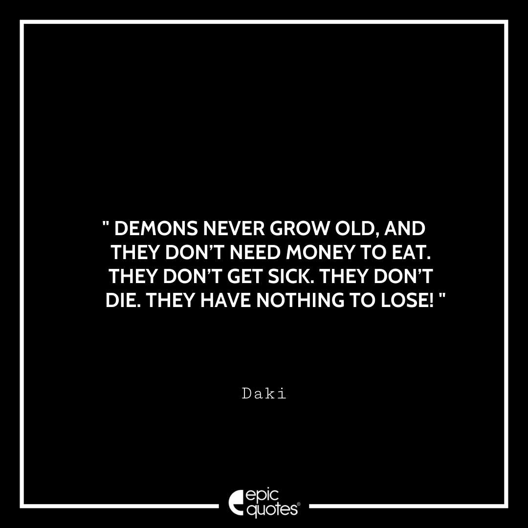 45. Demons never grow old, and they don’t need money to eat. They don’t get sick. They don’t die. They have nothing to lose – Daki
