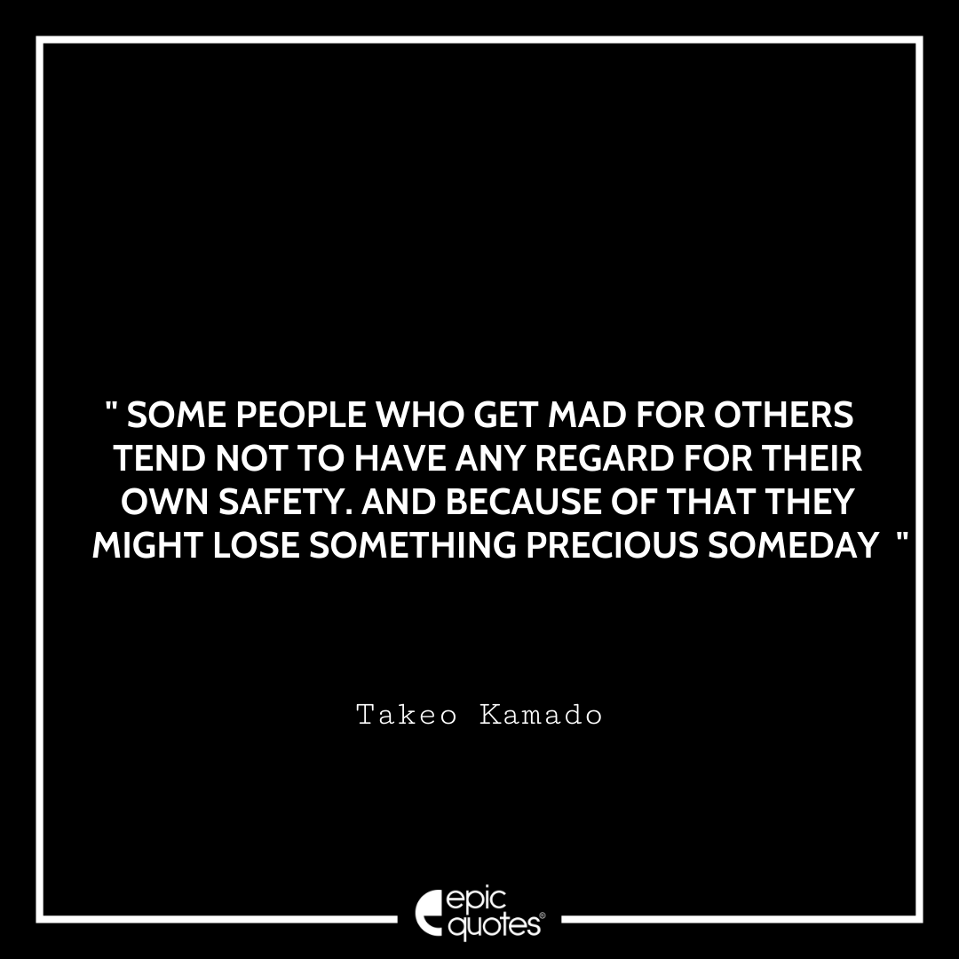 48. Some people who get mad for others tend not to have any regard for their own safety. And because of that they might lose something precious someday – Takeo Kamado