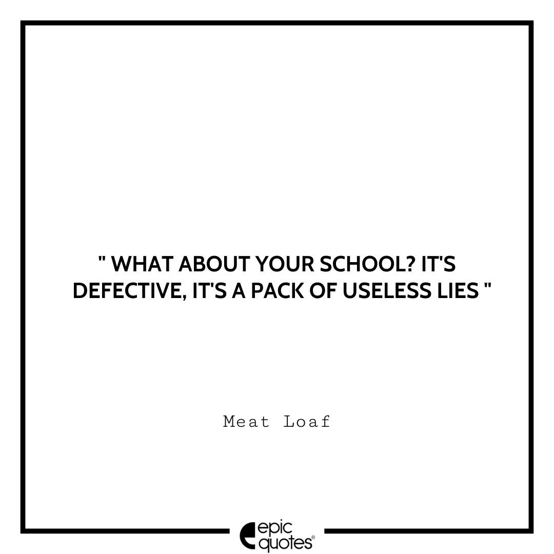 10. What about your school? It’s defective, it’s a pack of useless lies. -Meat Loaf