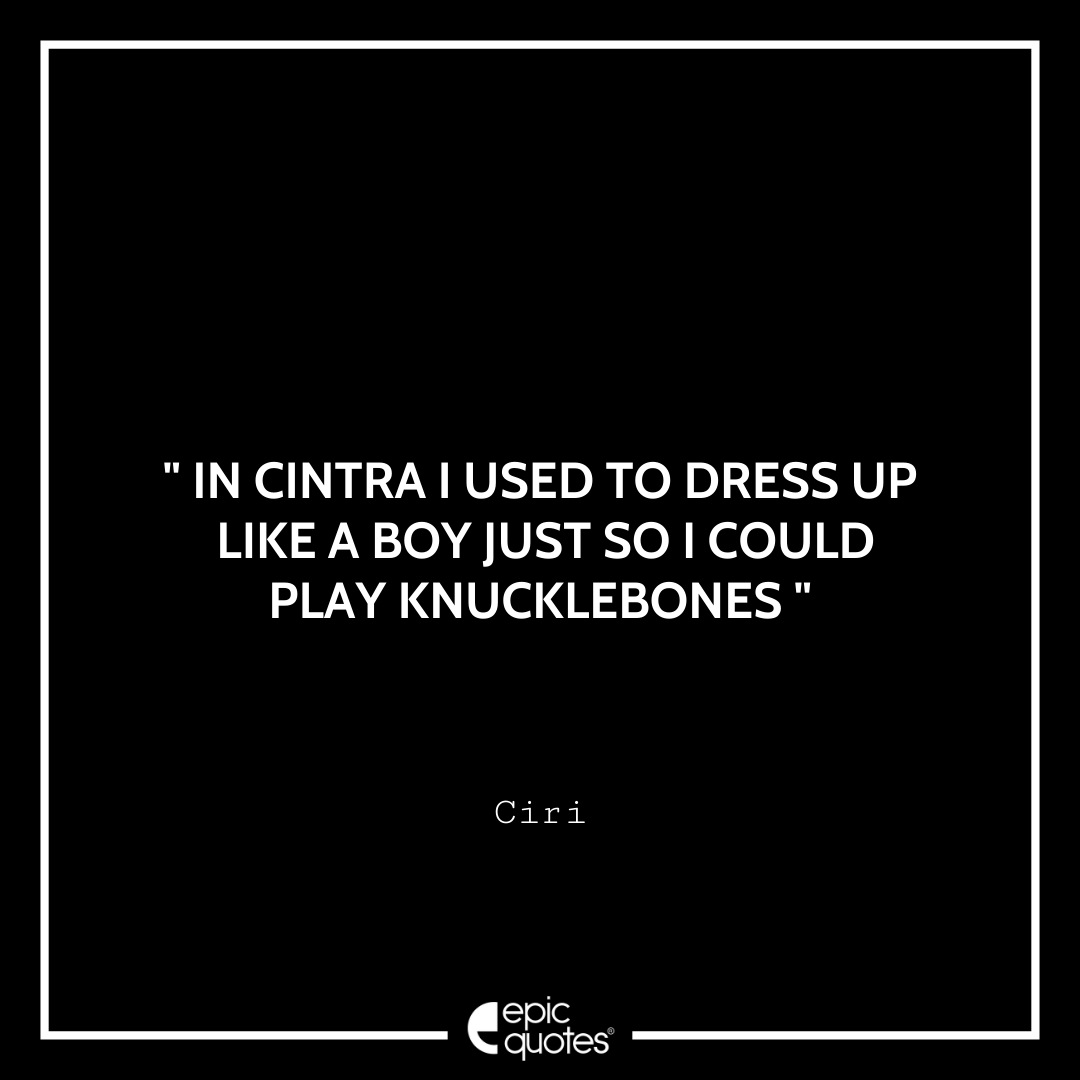 3 In Cintra I used to dress up like a boy just so I could play knucklebones. -Ciri