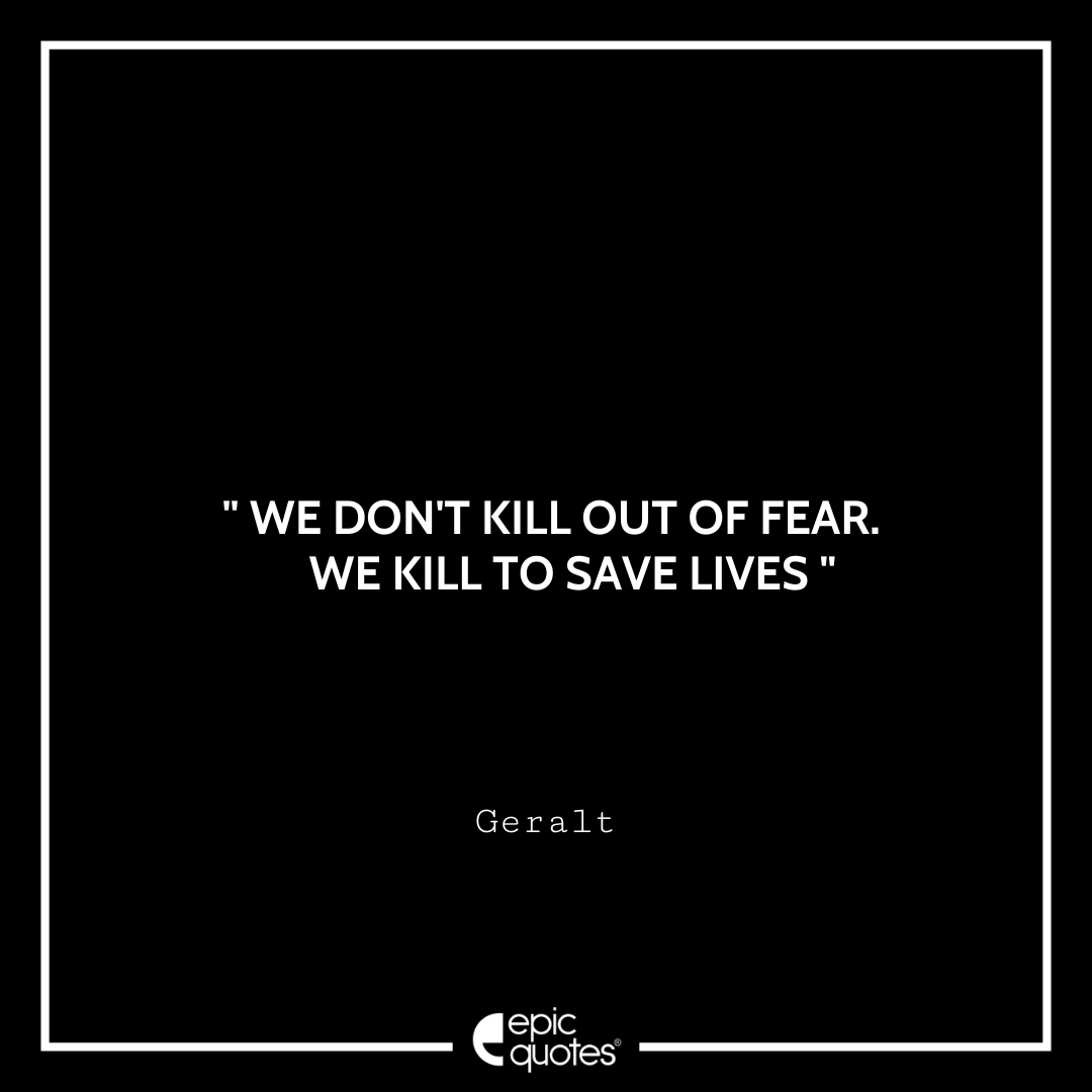 16 We don’t kill out of fear. We kill to save lives. -Geralt