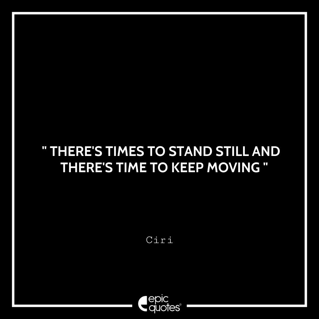 17 There’s times to stand still and there’s time to keep moving. -Ciri