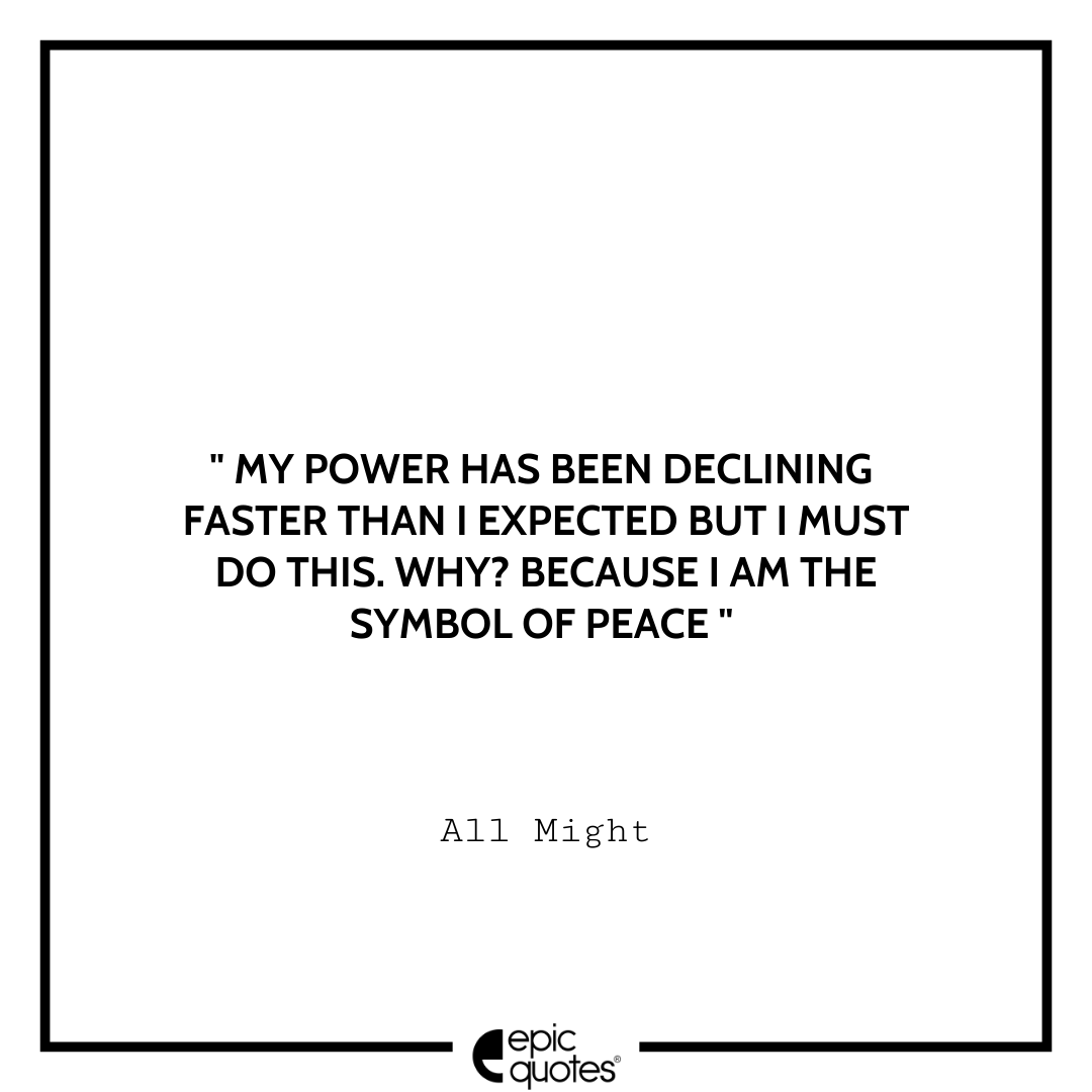 7. My power has been declining faster than I expected but I must do this. Why? Because I am the symbol of peace. -All Might