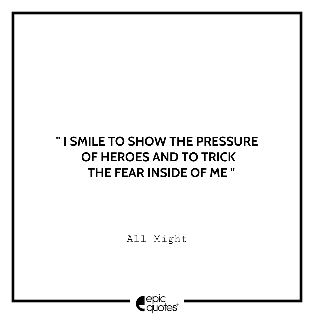 10. I smile to show the pressure of heroes and to trick the fear inside of me. -All Might