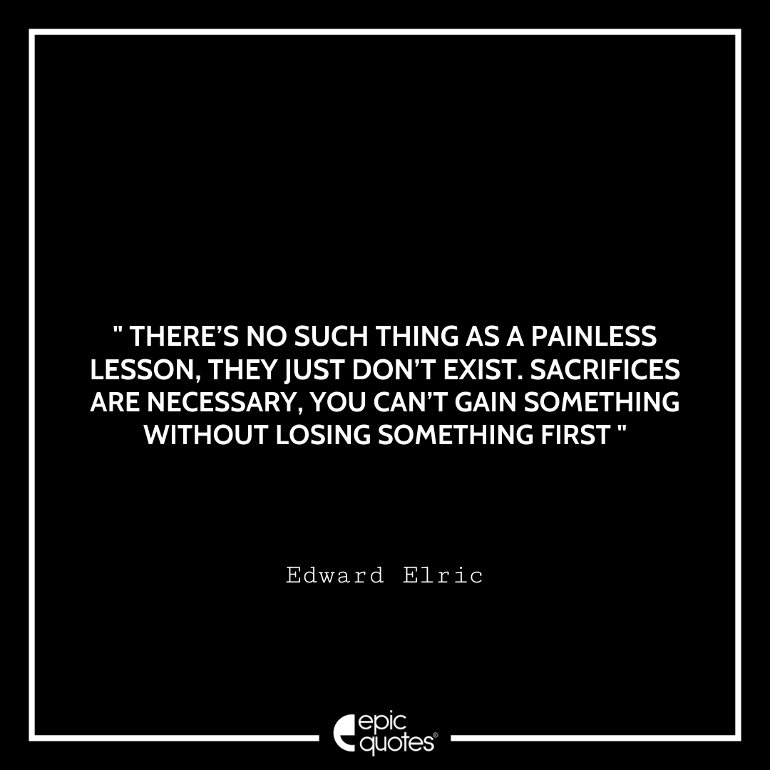 1 There’s no such thing as a painless lesson, they just don’t exist. Sacrifices are necessary, you can’t gain something without losing something first. -Edward Elric