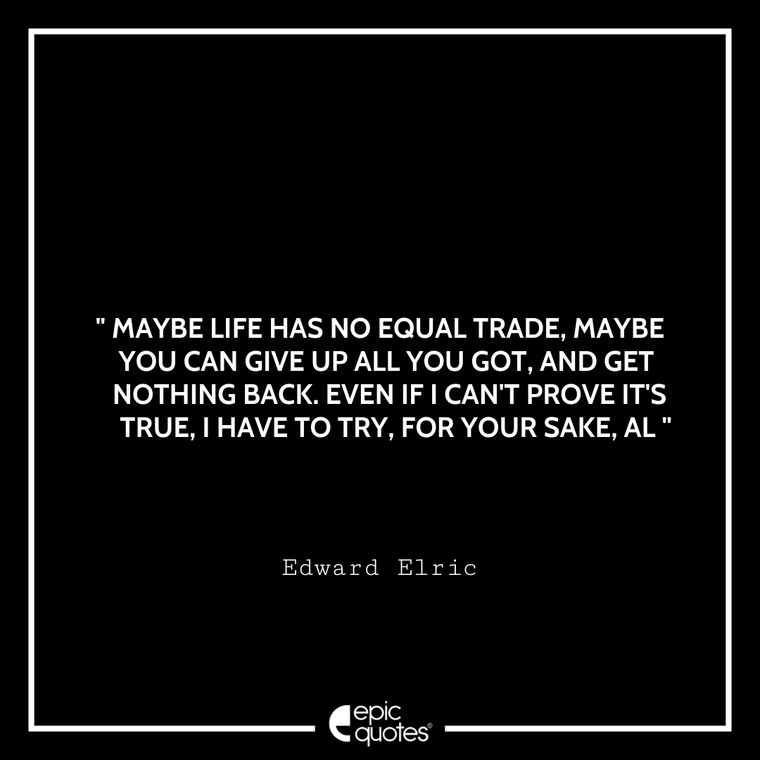 7. Maybe life has no equal trade, maybe you can give up all you got, and get nothing back. Even if I can’t prove it’s true, I have to try, for your sake, Al. -Edward Elric