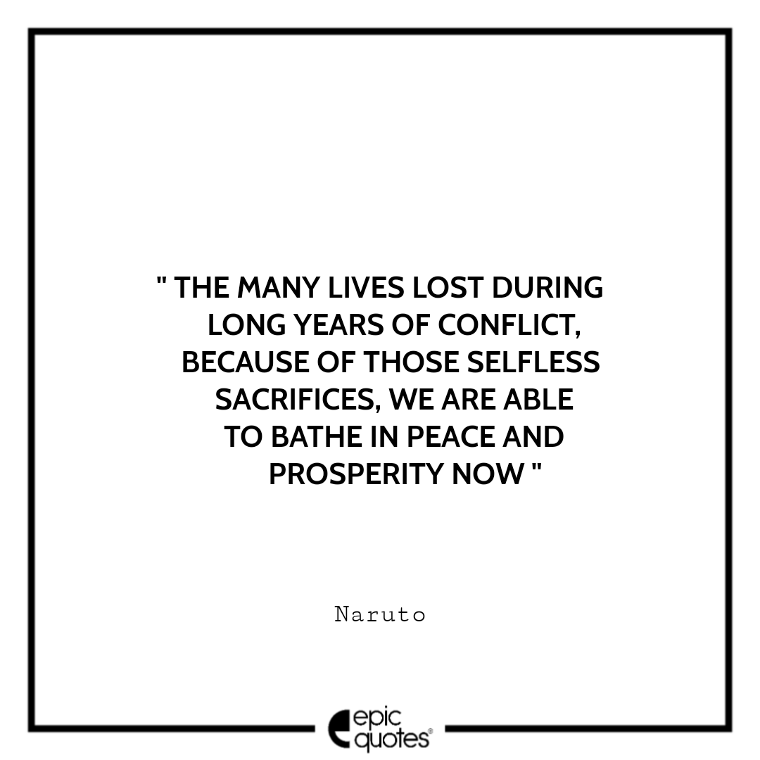 1 The many lives lost during long years of conflict, because of those selfless sacrifices, we are able to bathe in peace and prosperity now. -Naruto