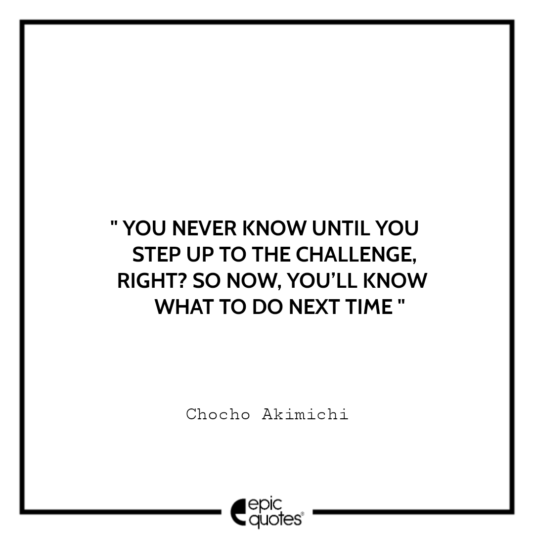 2 You never know until you step up to the challenge, right? So now, you’ll know what to do next time. –Chocho Akimichi