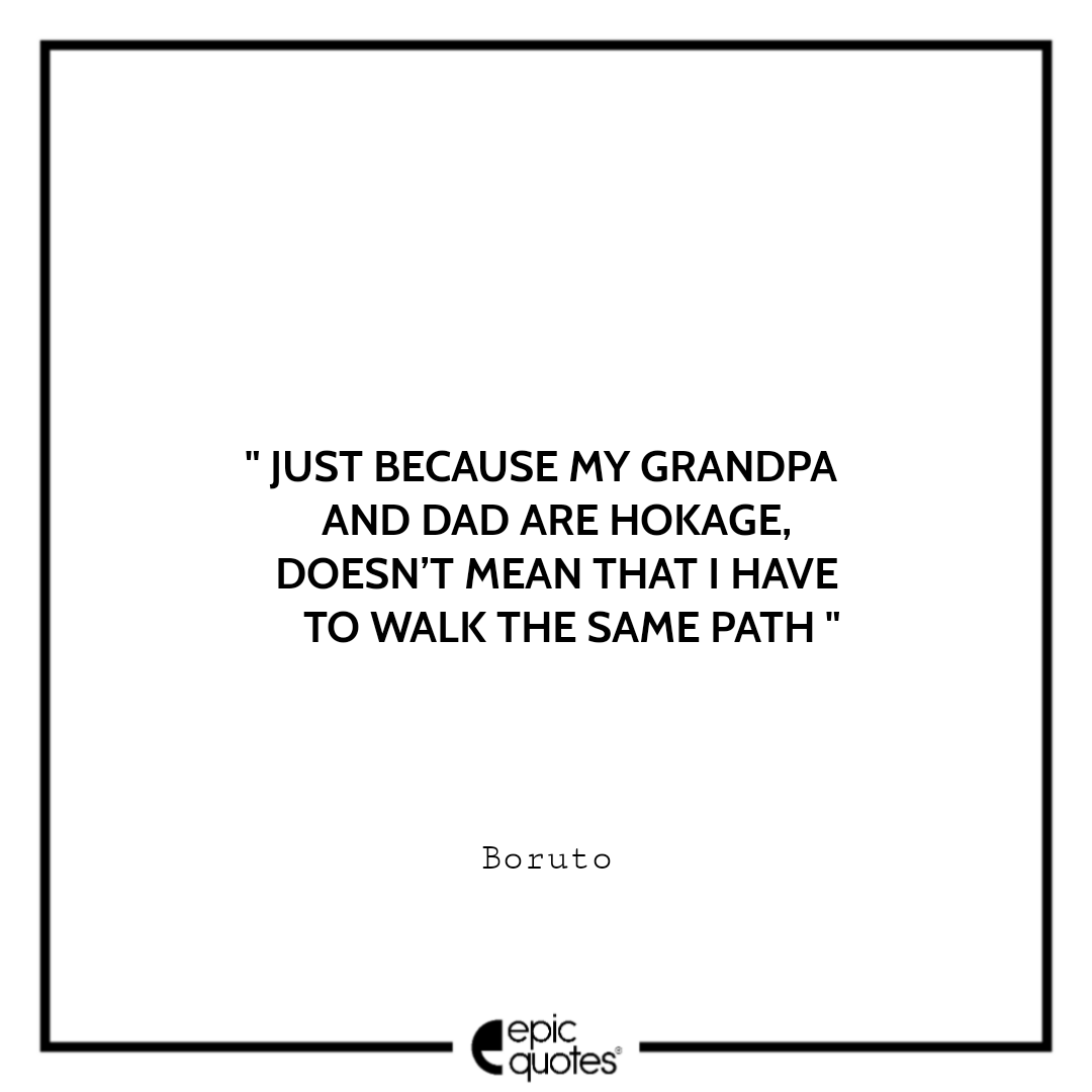 4 Just because my grandpa and dad are Hokage, doesn’t mean that I have to walk the same path. -Boruto