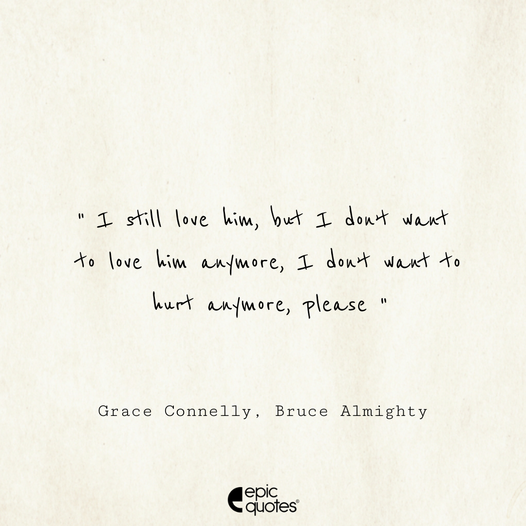3 I still love him, But I don’t want to love him anymore, I don’t want to hurt anymore, Please. -Grace Connelly, Bruce Almighty