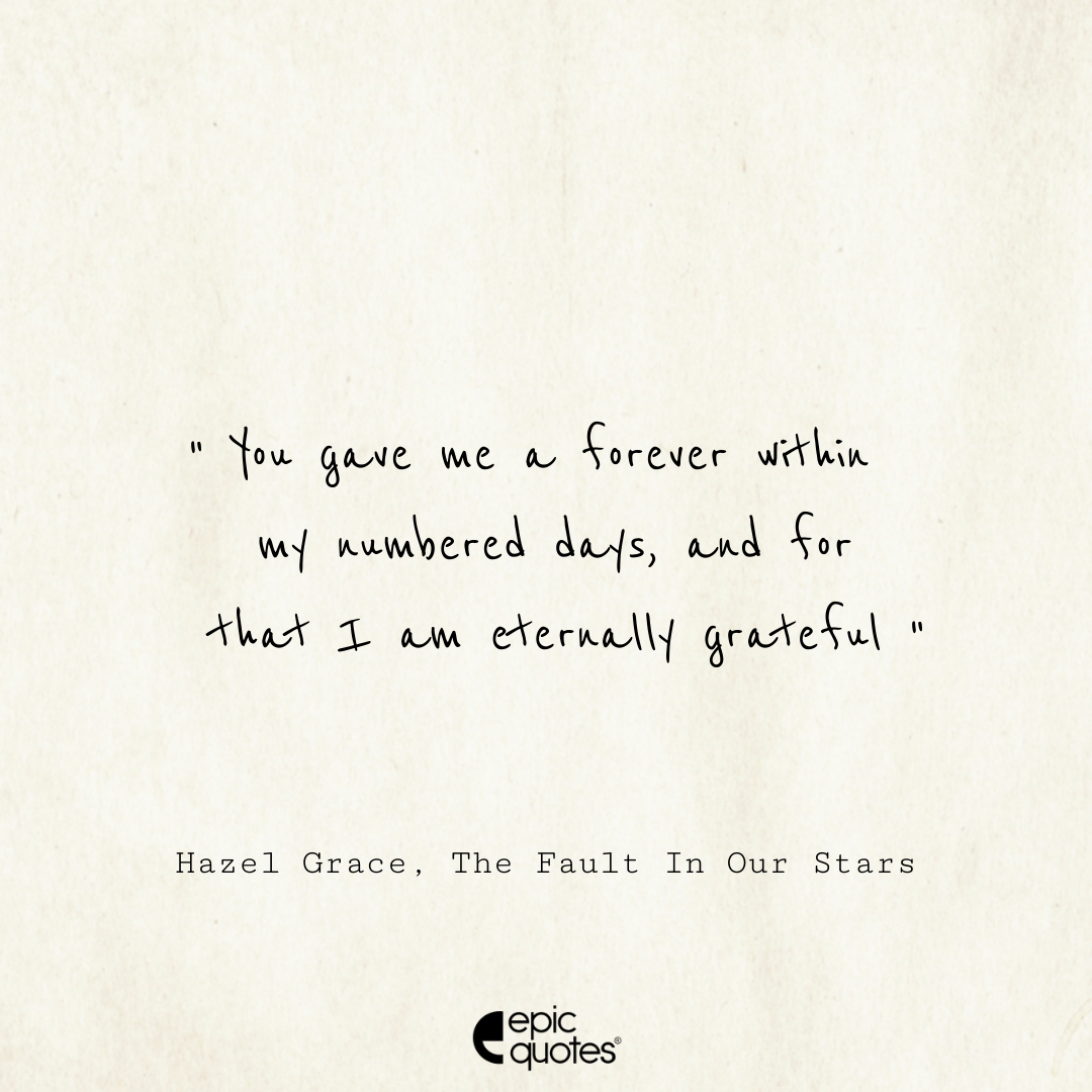8 You gave me a forever within my numbered days, and for that I am eternally grateful. -Hazel Grace, The Fault In Our Stars