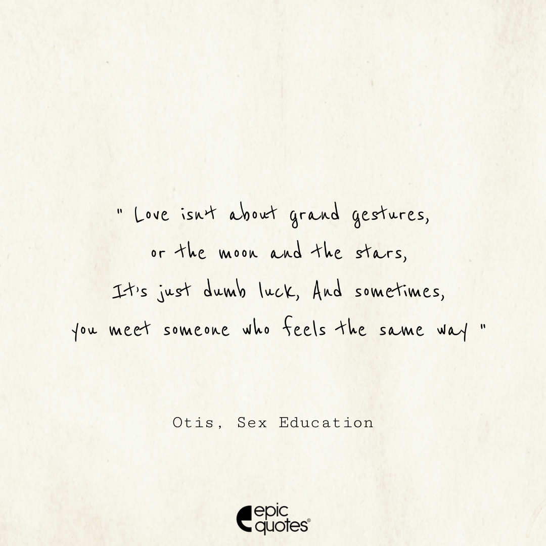 12 Love isn’t about grand gestures, or the moon and the stars, It’s just dumb luck, And sometimes, you meet someone who feels the same way. -Otis, Sex Education