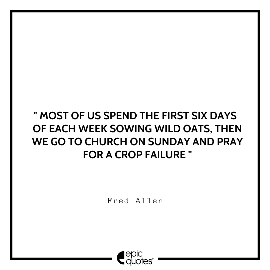 128. Most of us spend the first six days of each week sowing wild oats, then we go to church on Sunday and pray for a crop failure. -Fred Allen