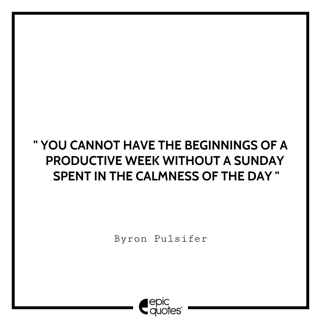 22 You cannot have the beginnings of a productive week without a Sunday spent in the calmness of the day. -Byron Pulsifer