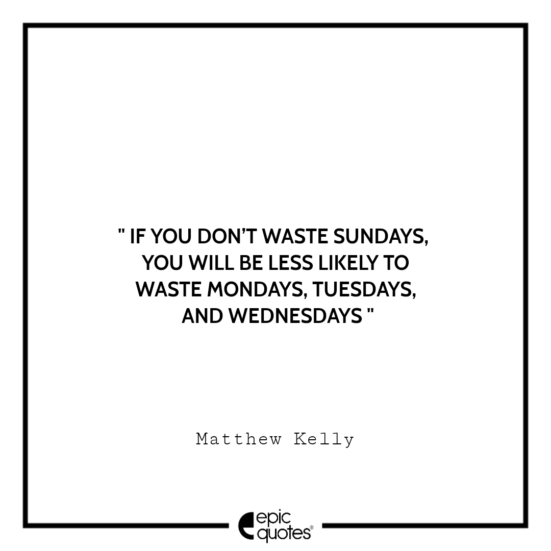91. If you don’t waste Sundays, you will be less likely to waste Mondays, Tuesdays, and Wednesdays. – Matthew Kelly