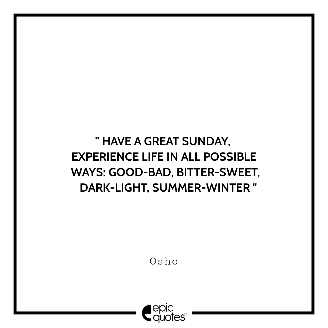 93. Have a great Sunday, Experience life in all possible ways: good-bad, bitter-sweet, dark-light, summer-winter. -Osho