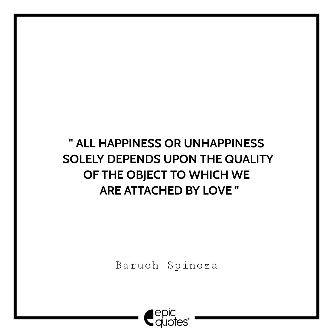 96. All happiness or unhappiness solely depends upon the quality of the object to which we are attached by love. –Baruch Spinoza