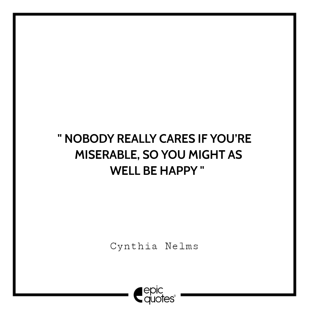 102. Nobody really cares if you’re miserable, so you might as well be happy. –Cynthia Nelms