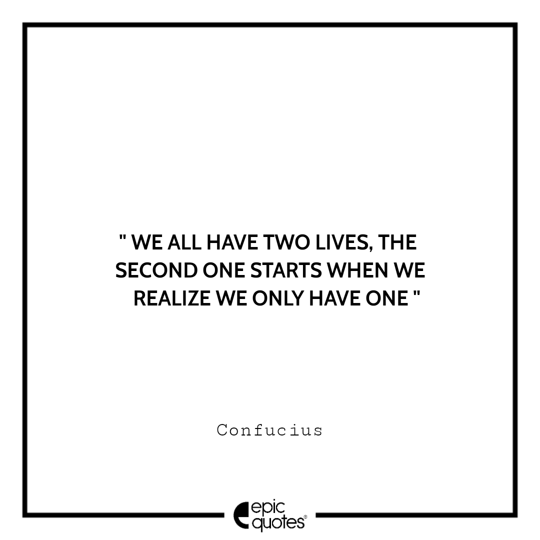 105. We all have two lives, the second one starts when we realize we only have one. -Confucius