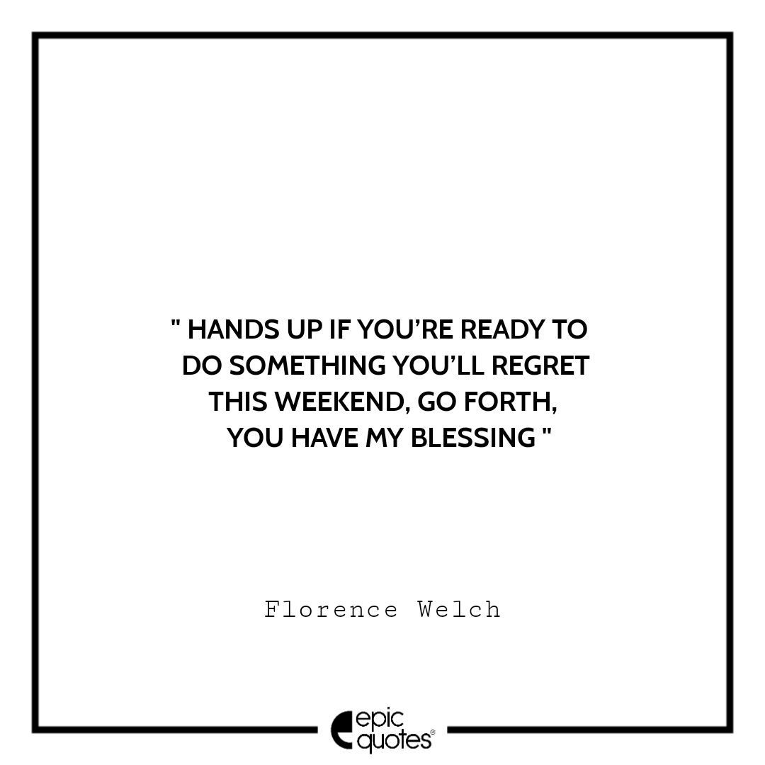 106. Hands up if you’re ready to do something you’ll regret this weekend, go forth, You have my blessing. -Florence Welch
