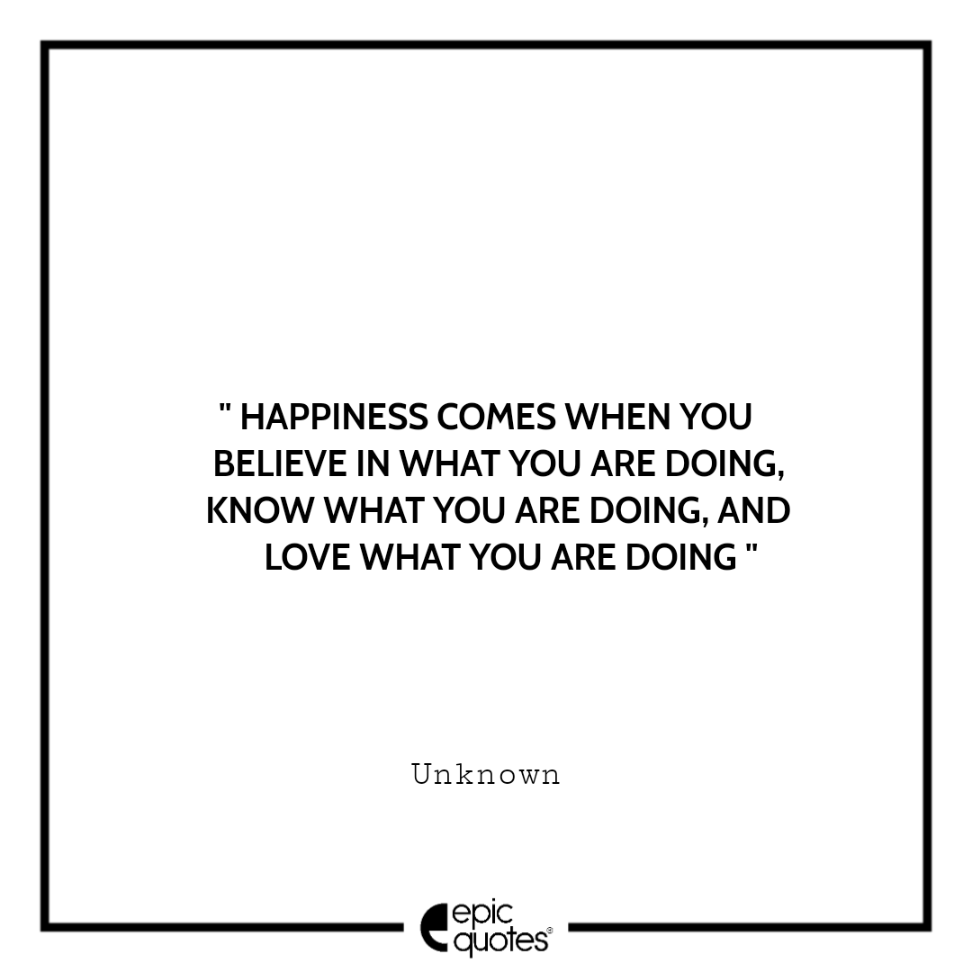 109. Happiness comes when you believe in what you are doing, know what you are doing, and love what you are doing. -Unknown
