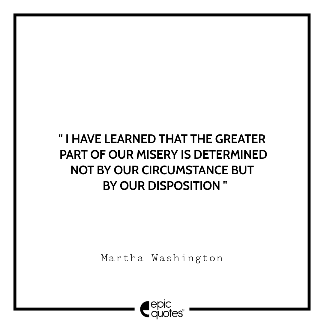 118. I have learned that the greater part of our misery is determined not by our circumstance but by our disposition. -Martha Washington