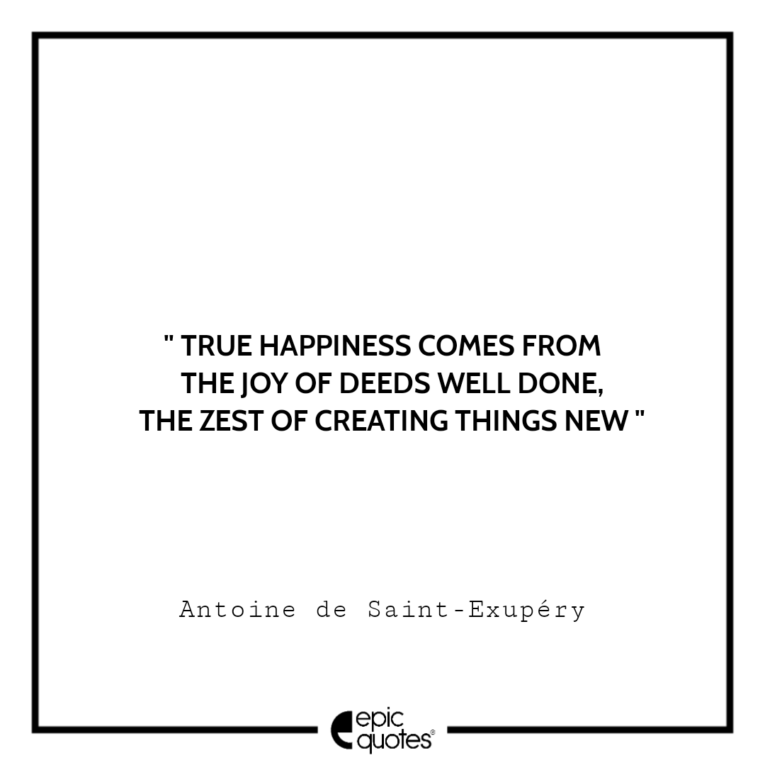 119. True happiness comes from the joy of deeds well done, the zest of creating things new. –Antoine de Saint-Exupéry