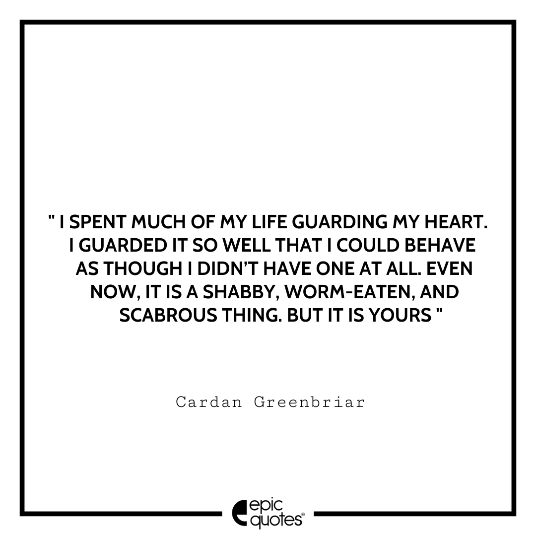 3 I spent much of my life guarding my heart. I guarded it so well that I could behave as though I didn’t have one at all. Even now, it is a shabby, worm-eaten, and scabrous thing. But it is yours.-Cardan Greenbriar