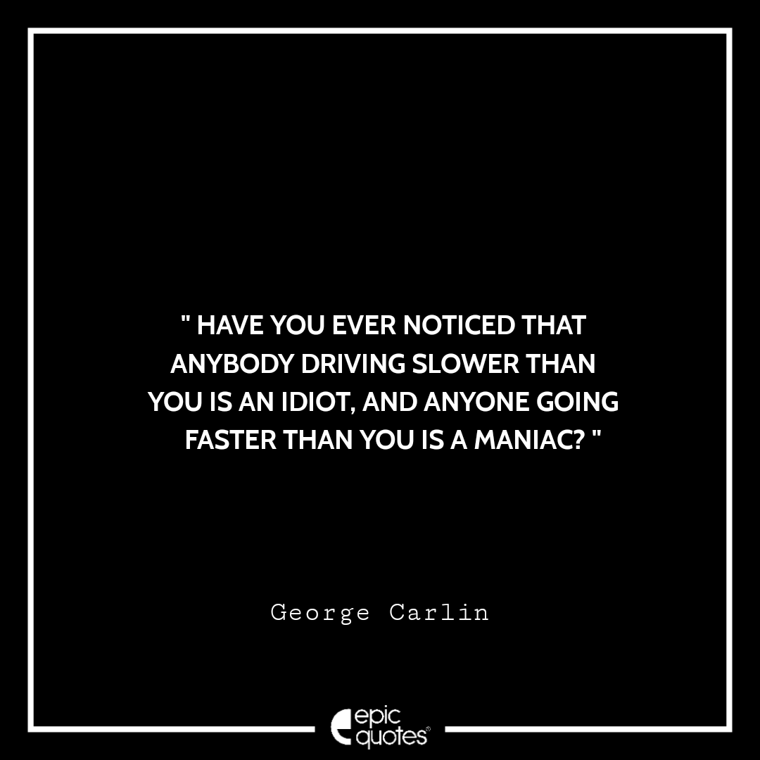 2. Have you ever noticed that anybody driving slower than you is an idiot, and anyone going faster than you is a maniac? -George Carlin