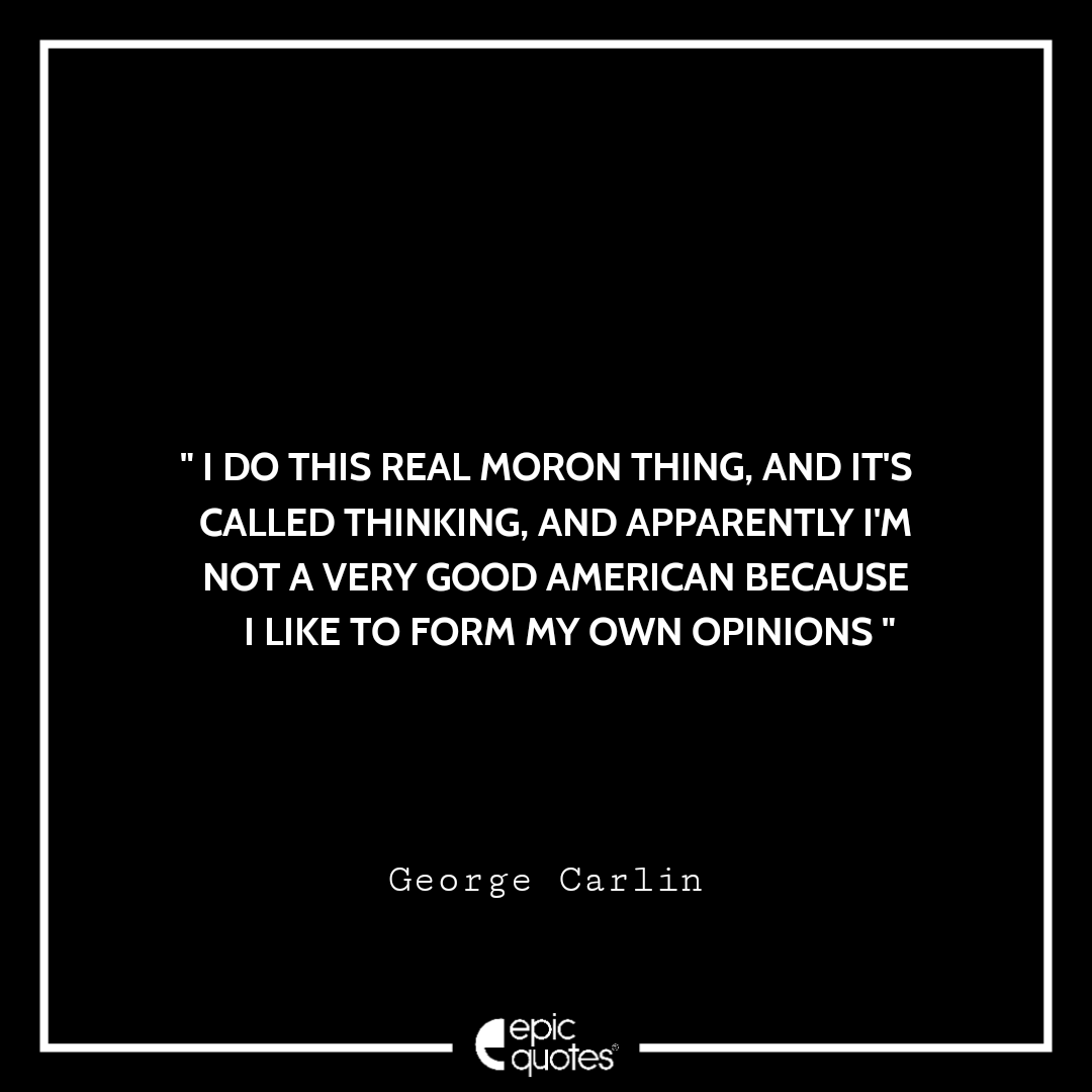 6. I do this real moron thing, and it’s called thinking, and apparently I’m not a very good American because I like to form my own opinions. -George Carlin