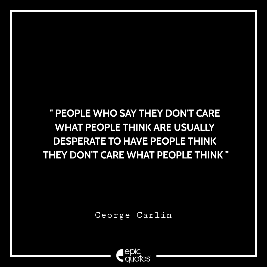 8. People who say they don’t care what people think are usually desperate to have people think they don’t care what people think. -George Carlin