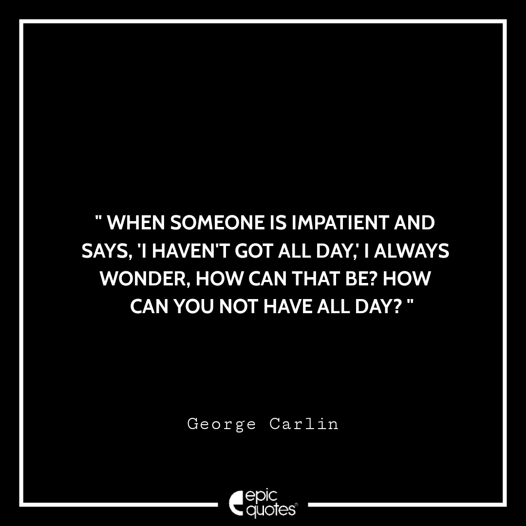 11 When someone is impatient and says, ‘I haven’t got all day,’ I always wonder, How can that be? How can you not have all day? -George Carlin