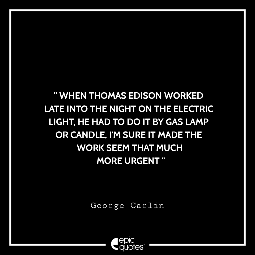 12 When Thomas Edison worked late into the night on the electric light, he had to do it by gas lamp or candle, I’m sure it made the work seem that much more urgent. -George Carlin