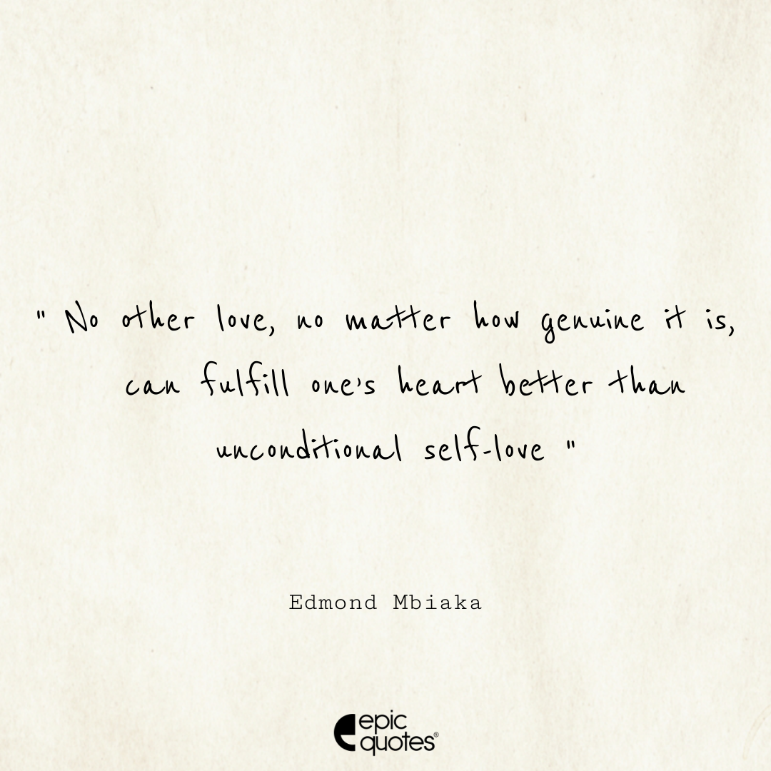 10 No other love, no matter how genuine it is, can fulfill one’s heart better than unconditional self-love. —Edmond Mbiaka