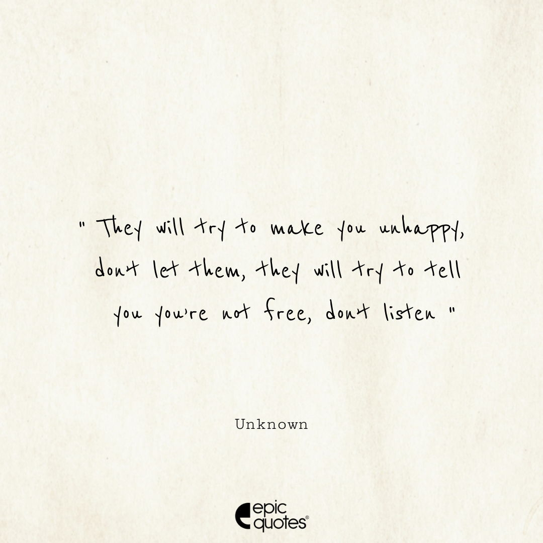 14 They will try to make you unhappy, don’t let them, they will try to tell you you’re not free, don’t listen. —Unknown