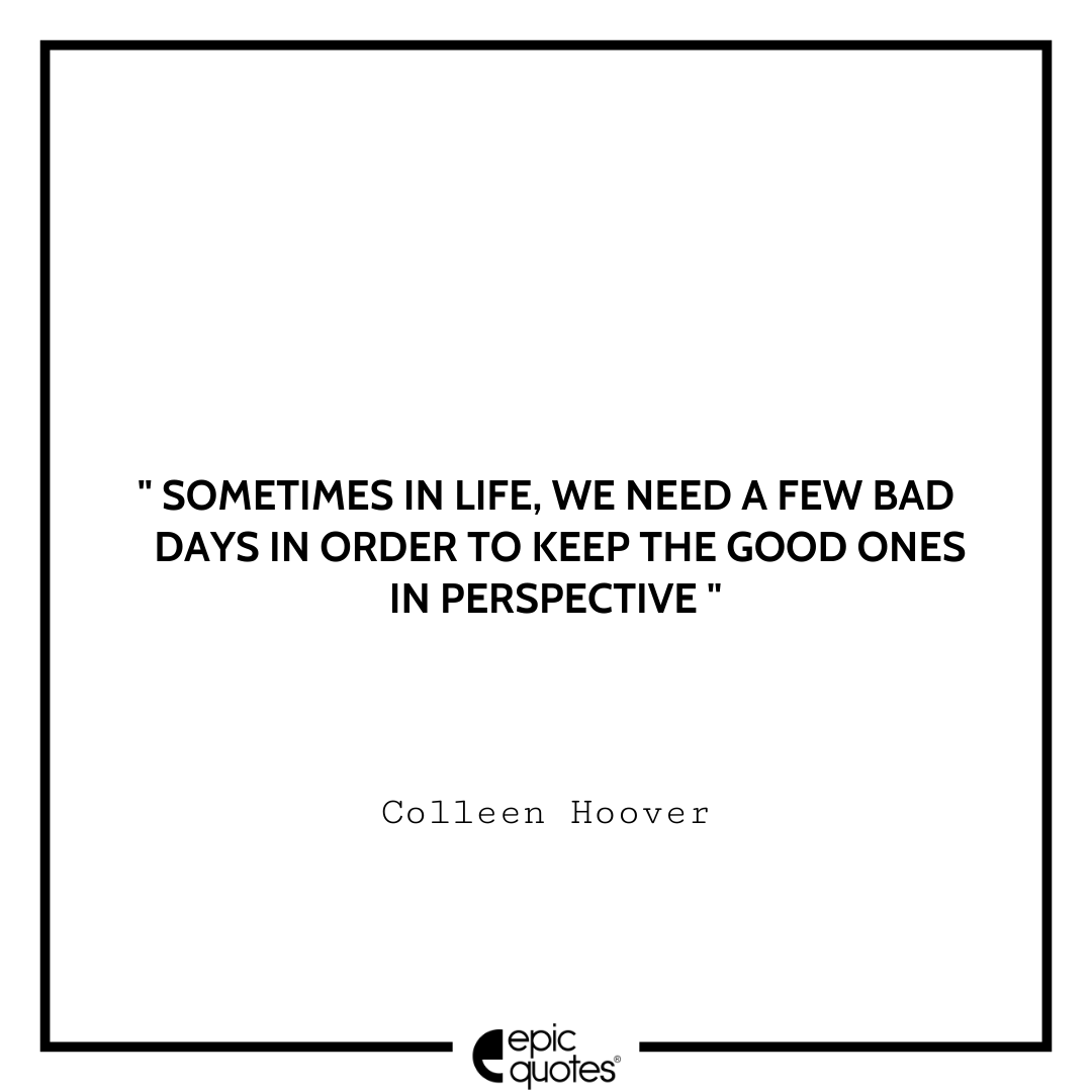 8. Sometimes in life, we need a few bad days in order to keep the good ones in perspective. -Colleen Hoover