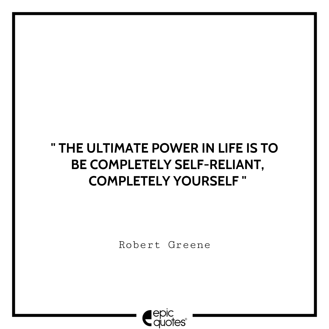 12 The ultimate power in life is to be completely self-reliant, completely yourself. -Robert Greene