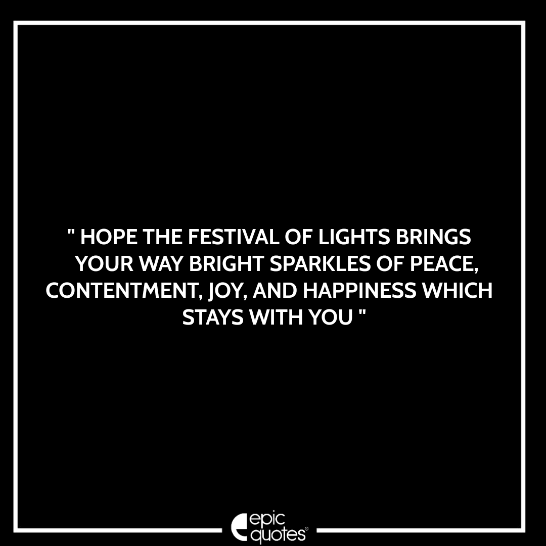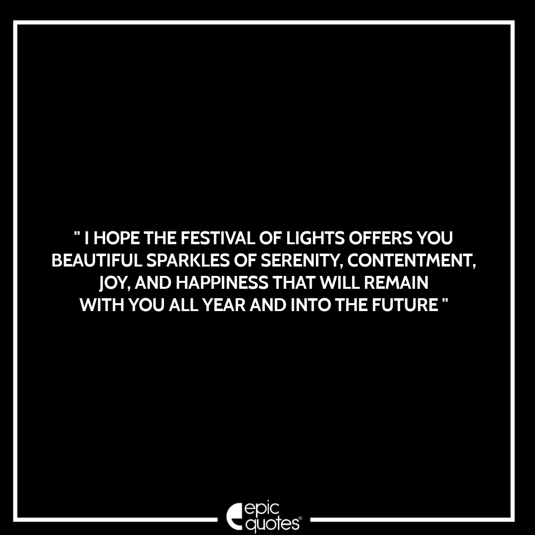 9 I hope the festival of lights offers you beautiful sparkles of serenity, contentment, joy, and happiness that will remain with you all year and into the future. -Unknown