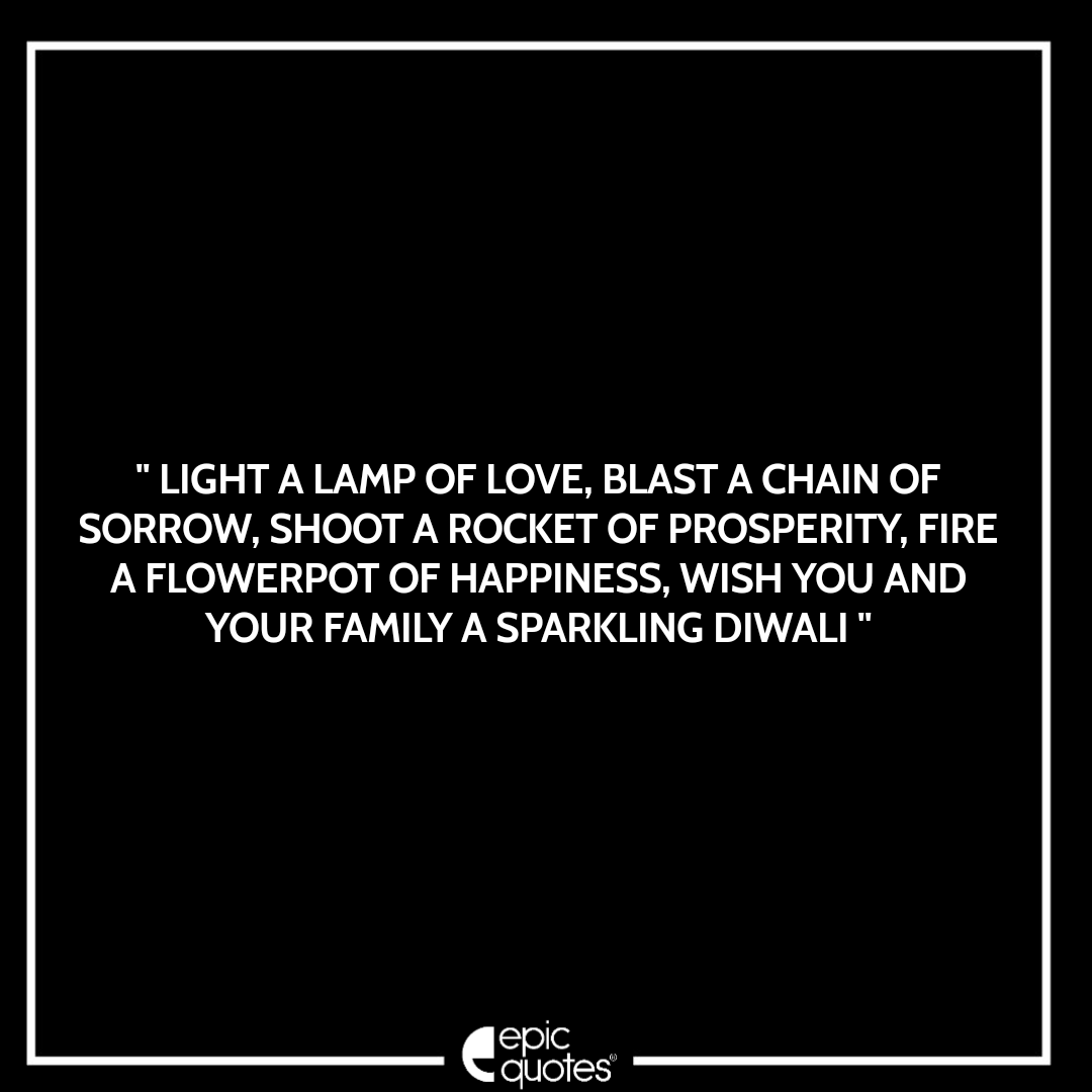4. Light a lamp of love, Blast a chain of sorrow, Shoot a rocket of prosperity, Fire a flowerpot of happiness, Wish you and your family a sparkling Diwali. -Unknown