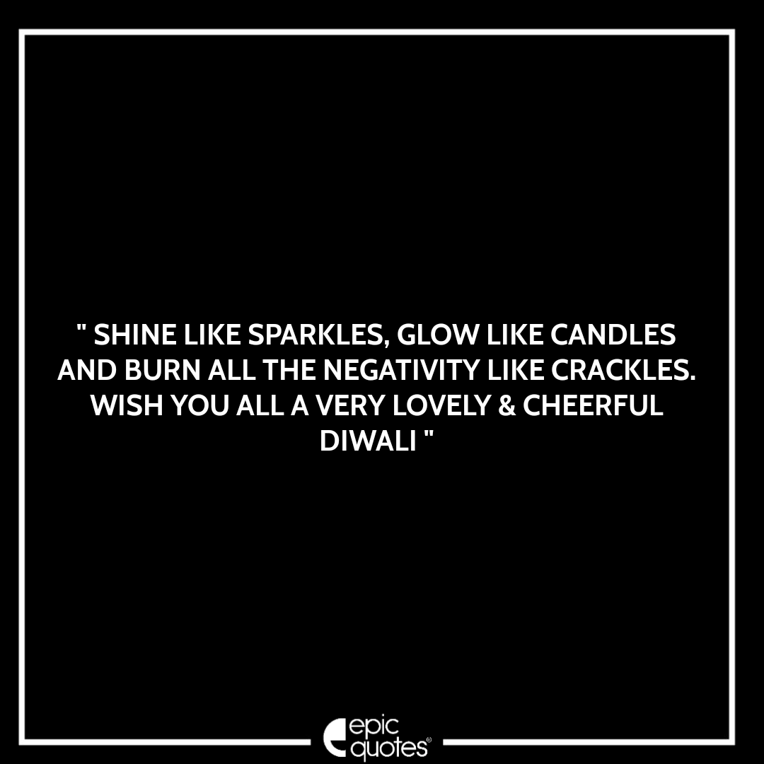 13. Shine like sparkles, glow like candles and burn all the negativity like crackles. Wish you all a very lovely & cheerful Diwali. -Unknown
