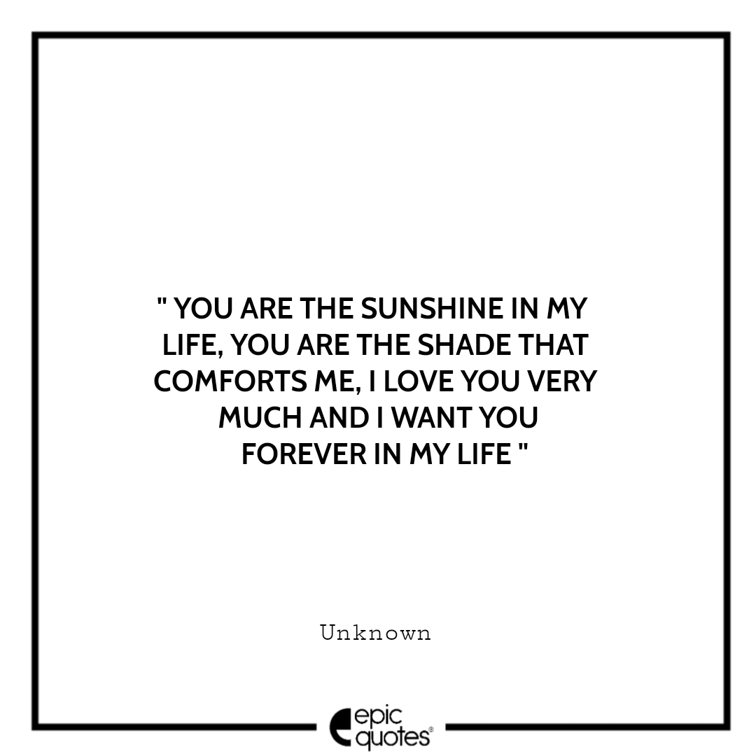 4 . You are the sunshine in my life, you are the shade that comforts me, I love you very much and I want you forever in my life. -Unknown