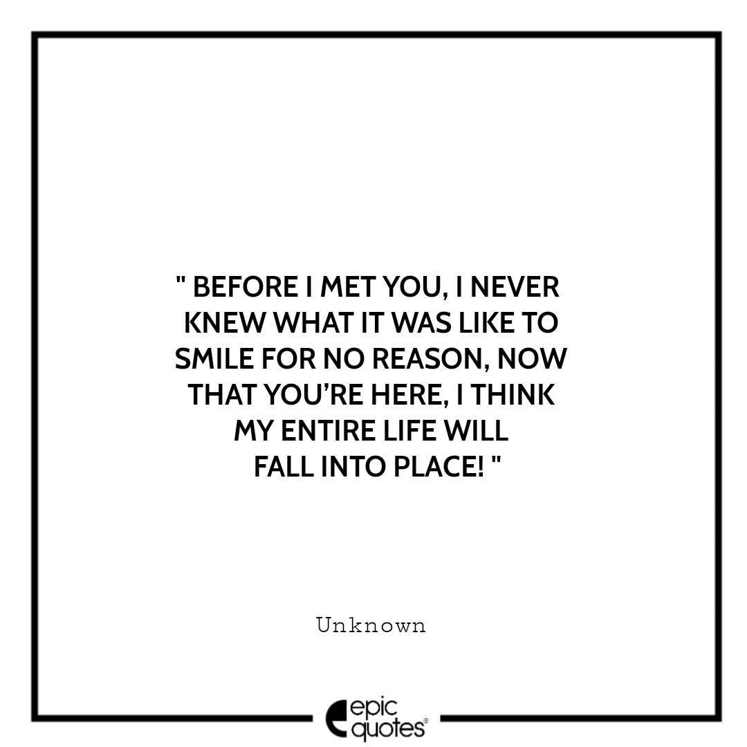 6 . Before I met you, I never knew what it was like to smile for no reason, now that you’re here, I think my entire life will fall into place! -Unknown