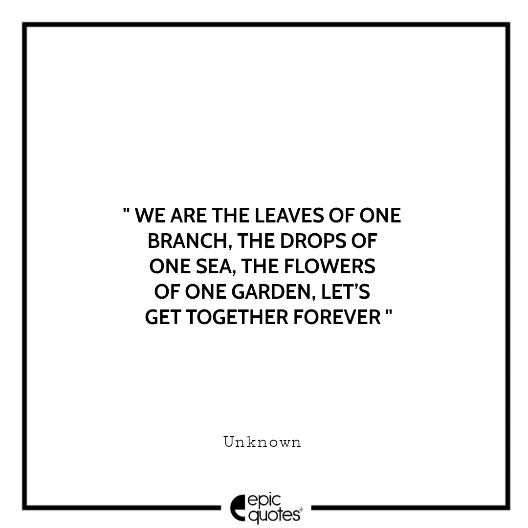 7. We are the leaves of one branch, the drops of one sea, the flowers of one garden, let’s get together forever. -Unknown