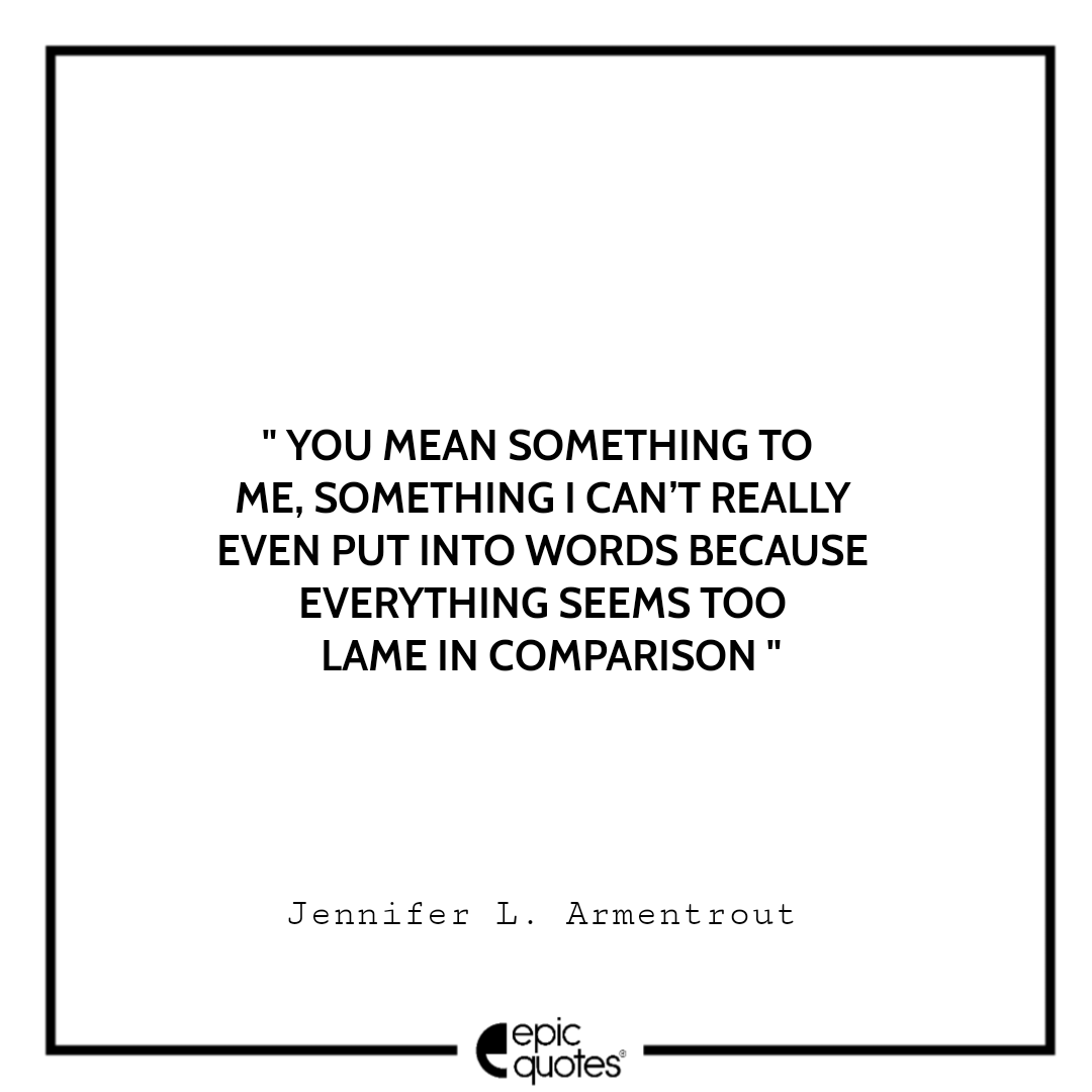 8 . You mean something to me, something I can’t really even put into words because everything seems too lame in comparison. -Jennifer L. Armentrout
