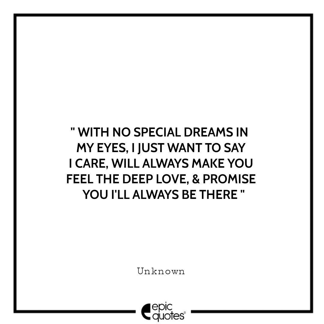 9 . With no special dreams in my eyes, I just want to say I care, will always make you feel the deep love, & promise you I’ll always be there. -Unknown