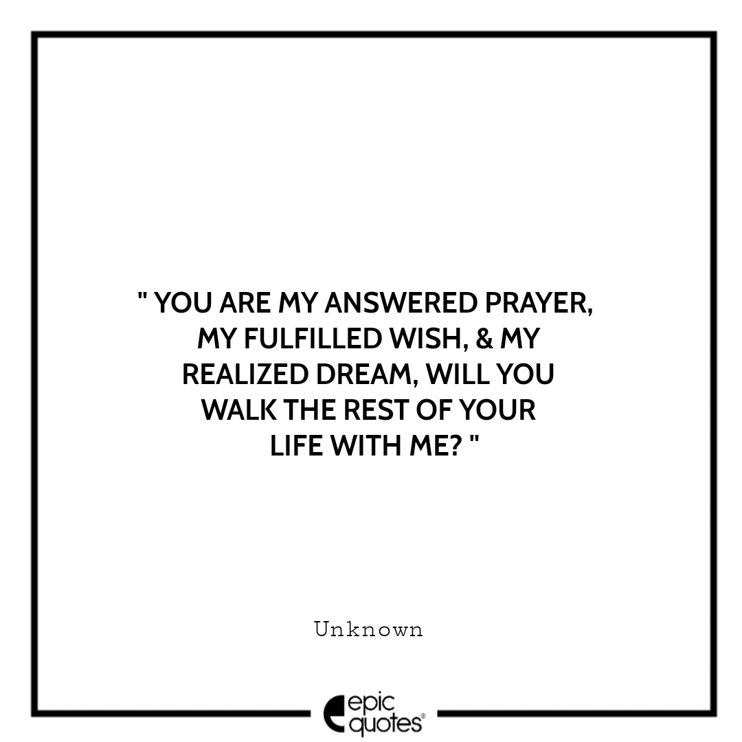 10 . You are my answered prayer, my fulfilled wish, & my realized dream, will you walk the rest of your life with me? -Unknown