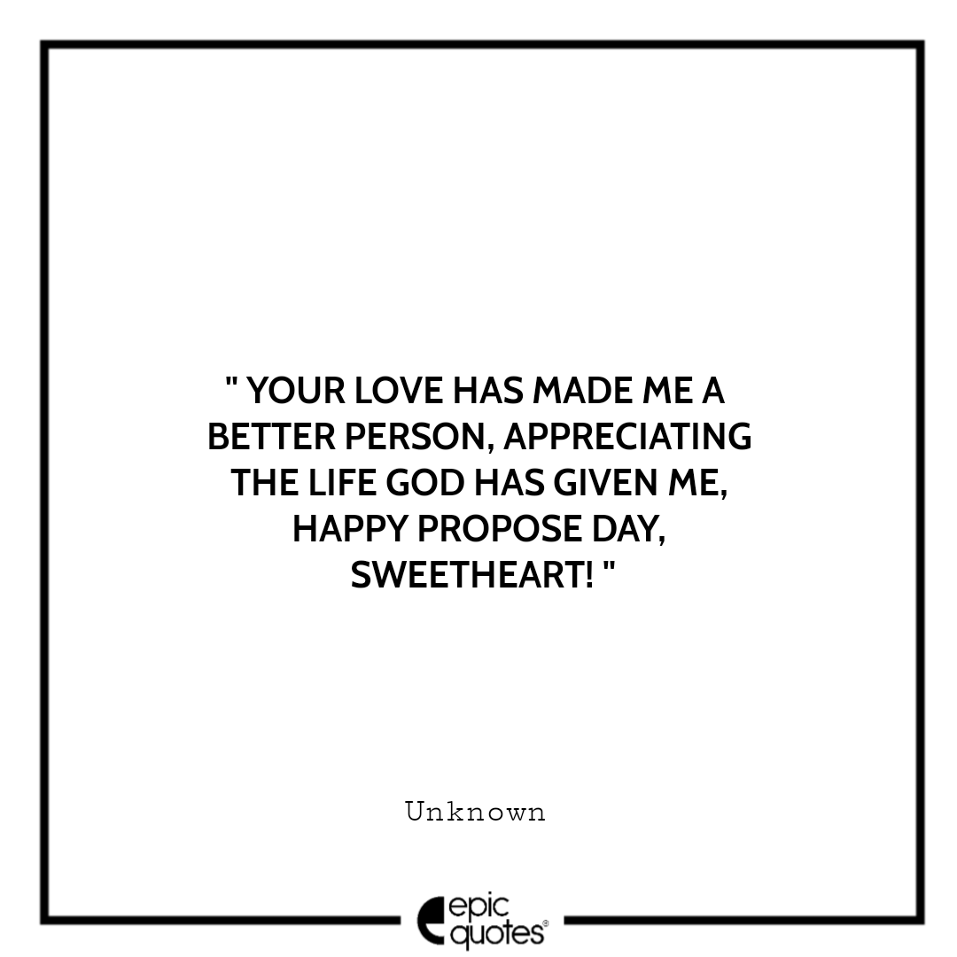 11 . Your love has made me a better person, appreciating the life God has given me. Happy Propose day, sweetheart! -Unknown
